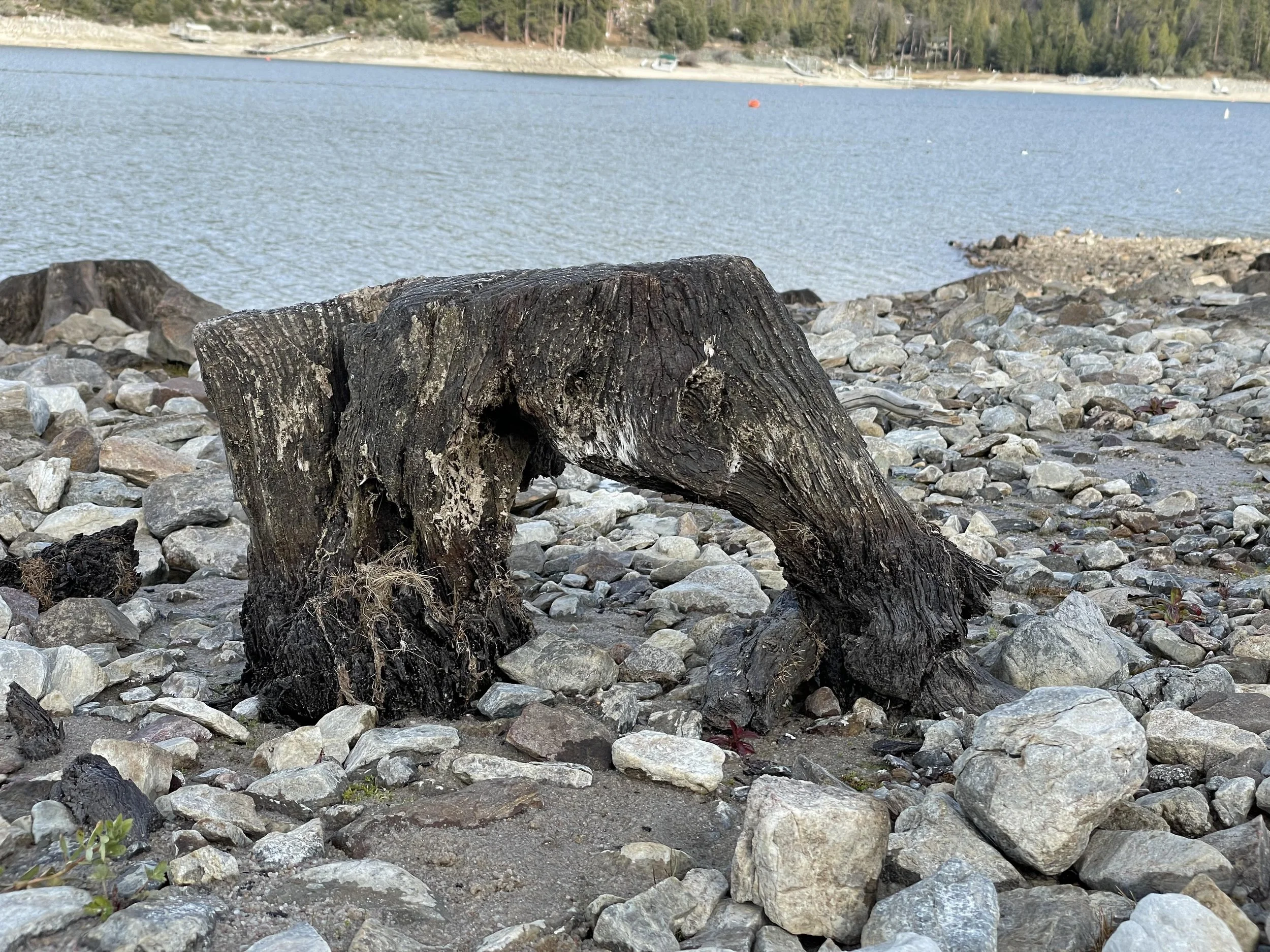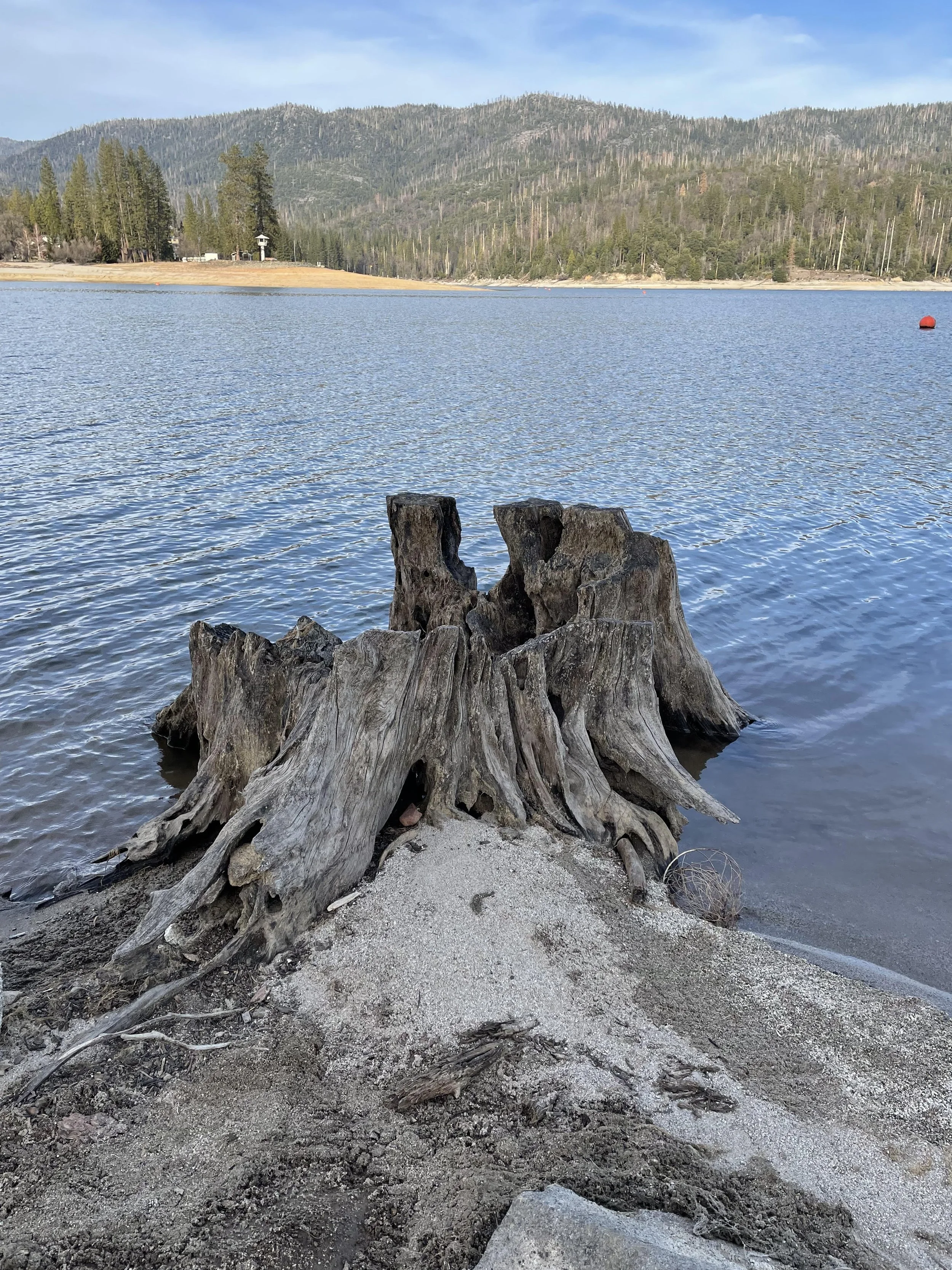 When the water level of Bass Lake goes down in late summer and fall, the stumps are exposed. Bass Lake is on the location of what was once called Crane Valley with Willow Creek running through the center. This valley has had many uses over the years. The Western Mono and Chuckchansi inhabited this area for hundreds of years, followed by ranchers, loggers, miners and energy corporations. In the early 1900’s the valley was dammed up for logging purposes and then an even larger dam was created and it was turned into a reservoir to generate power. All the trees were cut down in this valley and now only the stumps remain. I have spent the last two years photographing the stumps but I will never capture them all.